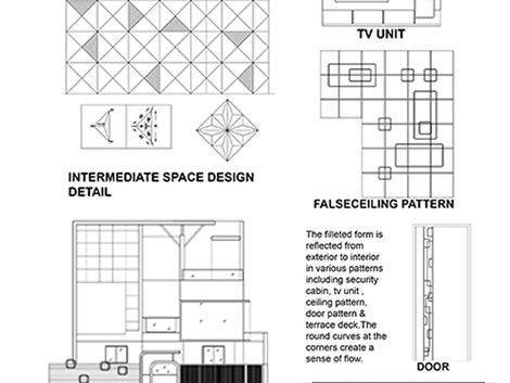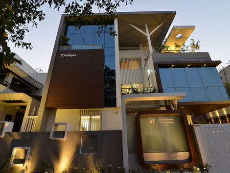 The initial idea for this house was to outline all its views towards the interior since the views of the environment that it surrounded was not anything attractive. The unique signature of this project is the surprise element created by the number of amenities accommodated in such a small space to conjure different moods and which cannot be visualized from the exterior. The spaces are organized so as there is a play of volume, form and light. The living, dining, and kitchen is located at the ground level with an elder's room. First level is a private space accommodating three bed rooms. The second level accommodates a bedroom, gym, spa and home theatre. The terrace level has a pool table area with a terrace garden. The intermediate lobbies are treated with different shaped screens.