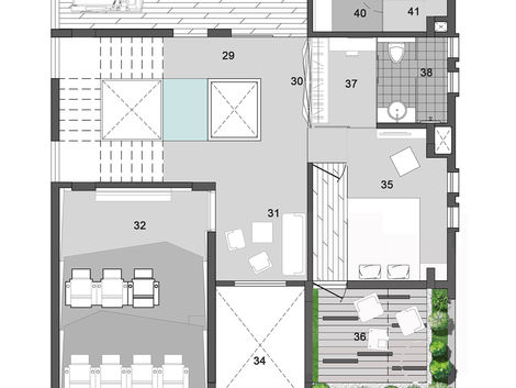 This project incorporates popular modern green features such as solar panels, green walls and a roof deck with a garden\green roof. South facing solar panels heat water in winters reducing the electric cost. So overall, Urban villa is a great mix of flexibility, luxury, and efficiency.
